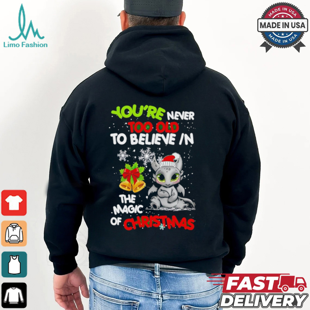 Toothless You’re never too olf to believe in the magic of Christmas shirt hoodie, tank top, sweater and long sleeve t-shirt