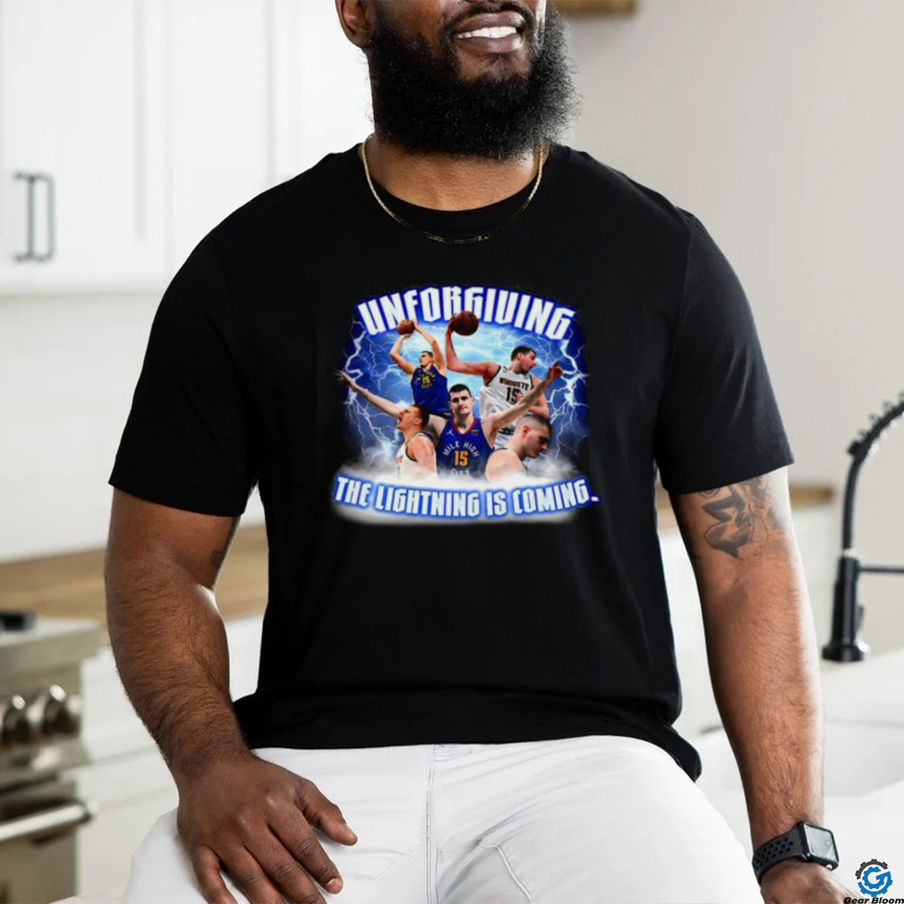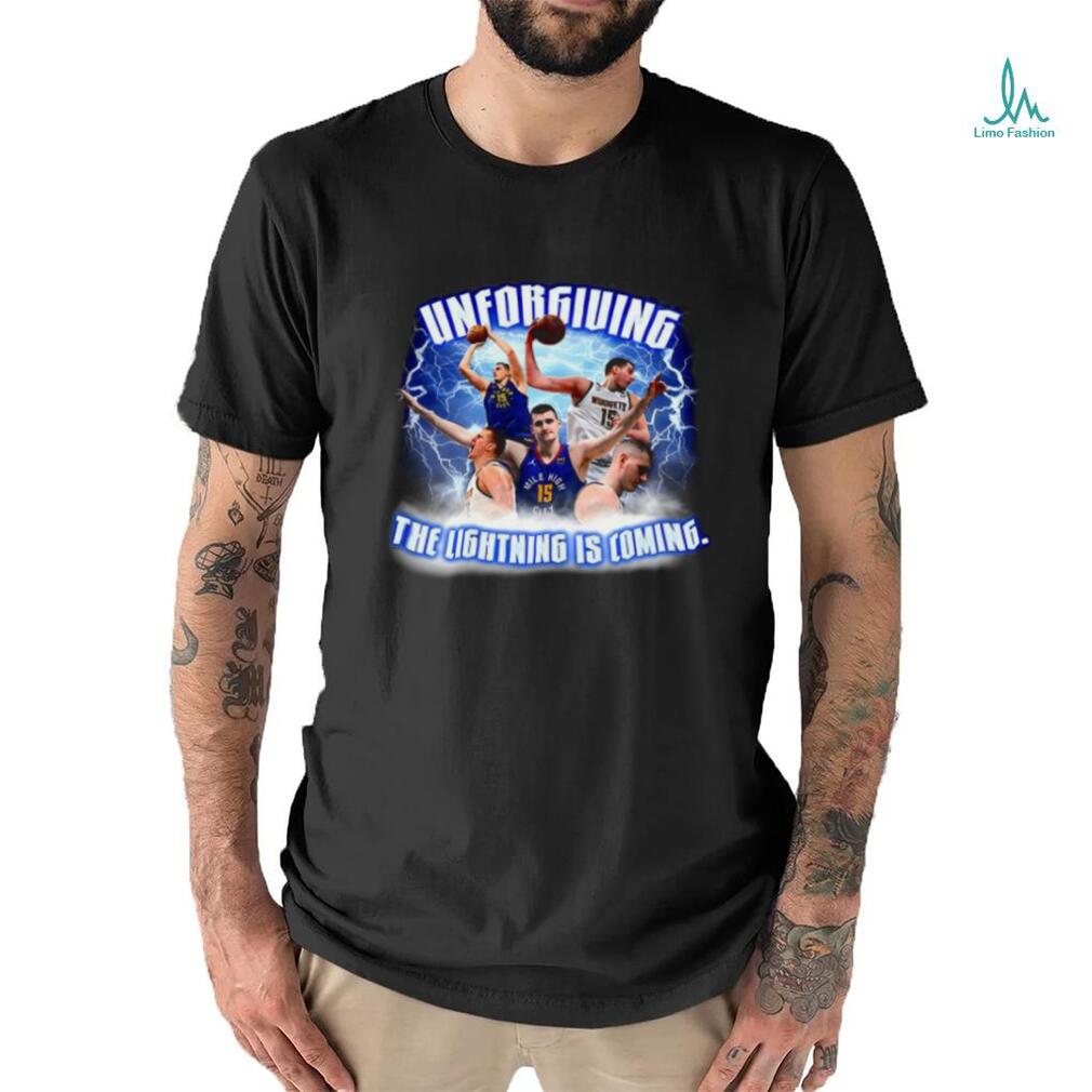 Top nikola Jokic Unforgiving the lightning is coming shirt, Hoodie, Sweater, Vneck, Unisex and T-shirt