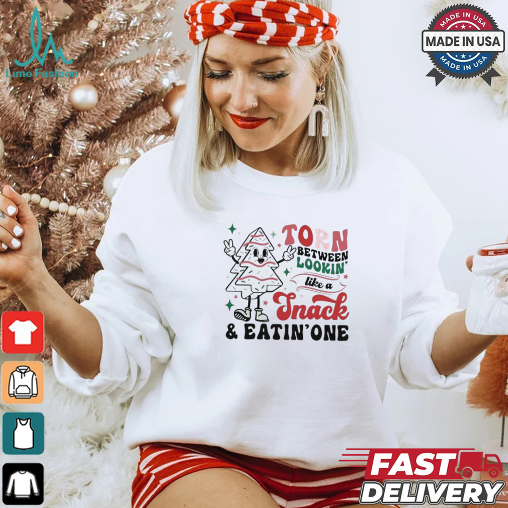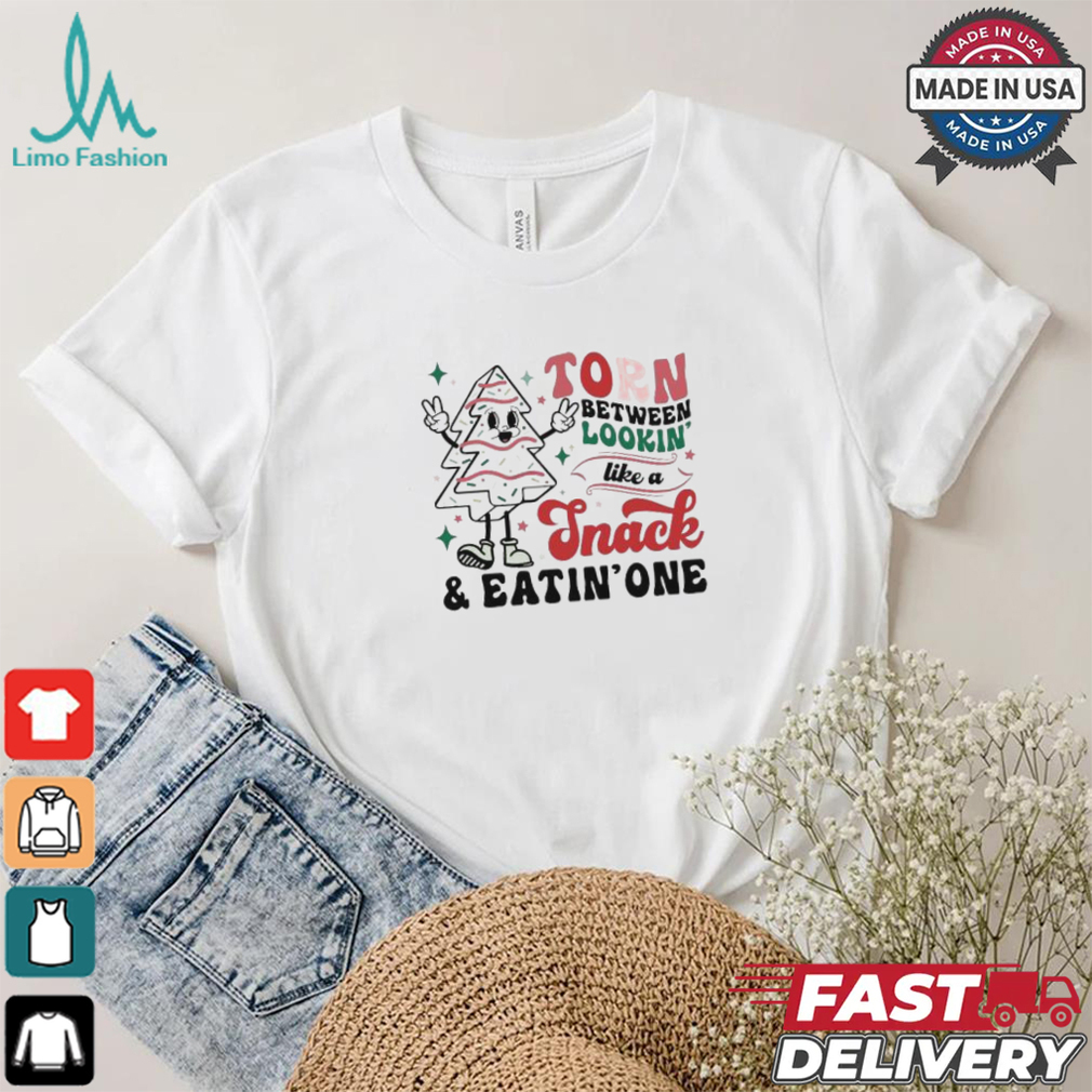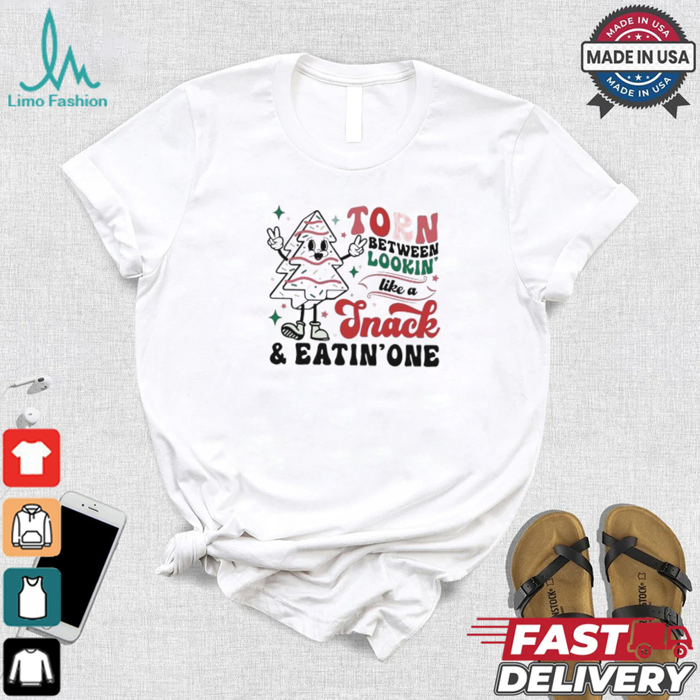Christmas trees are sold all over before christmas. There are several types of Torn Between Lookin Like A Snack And Eating One T shirt : There are cultivated trees that have been cut and shaped to be dense and ideal in shape. And there are naturally grown trees right from the nearby forest. They are not as “pretty”, because they are just how they happened to grow. I value the natural trees, because they give me a better feeling about the connection with my natural surrounding. I give the highest value to a tree I have cut myself, but this isn’t always possible, so I usually buy a natural domestic tree.
