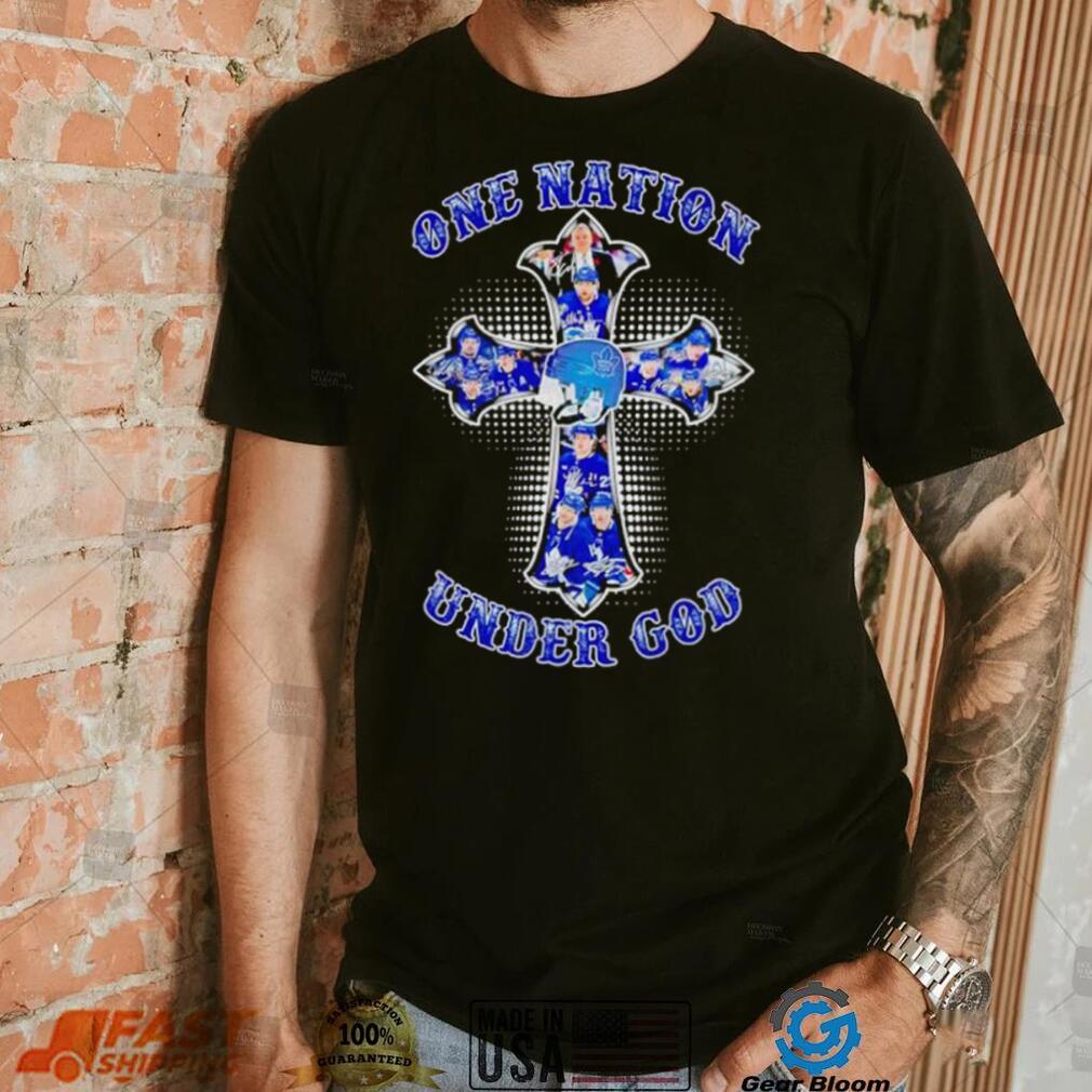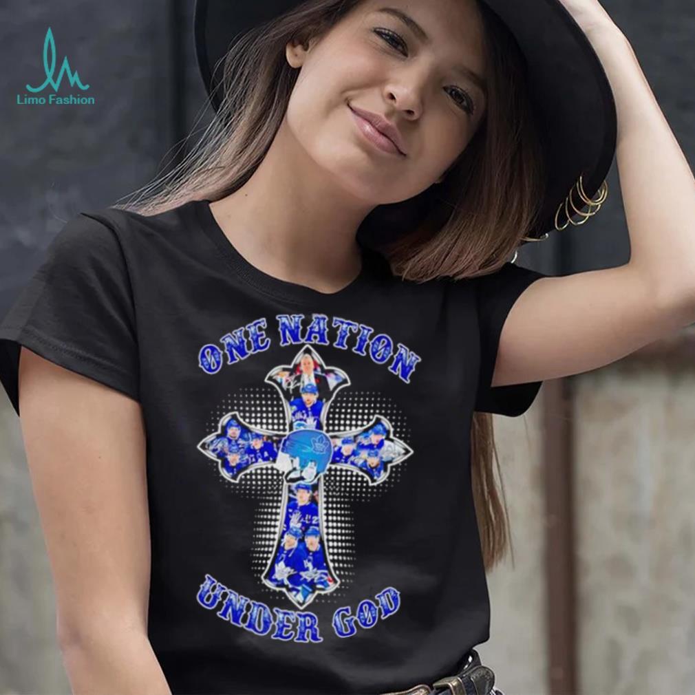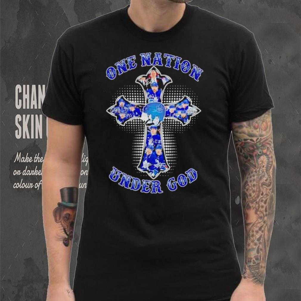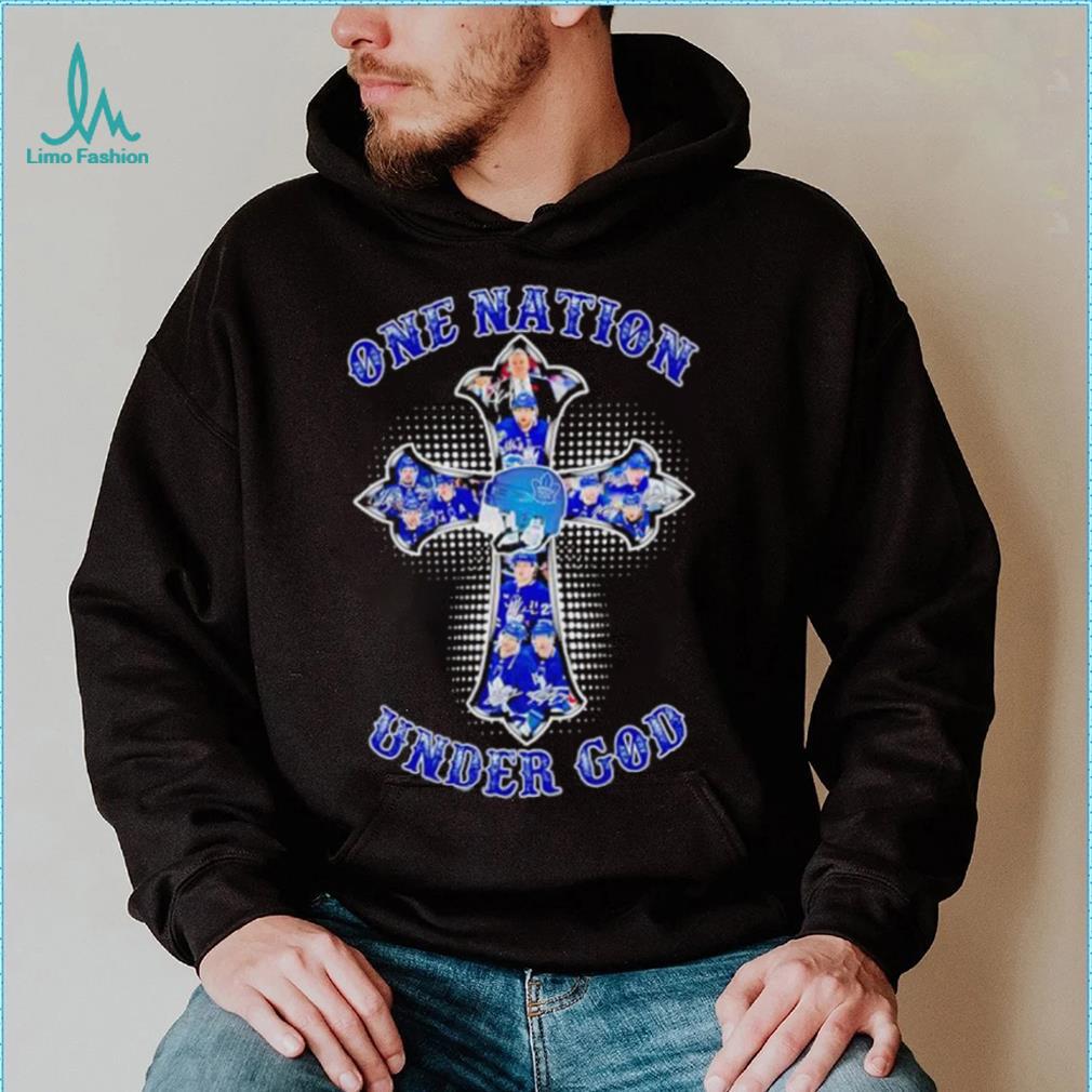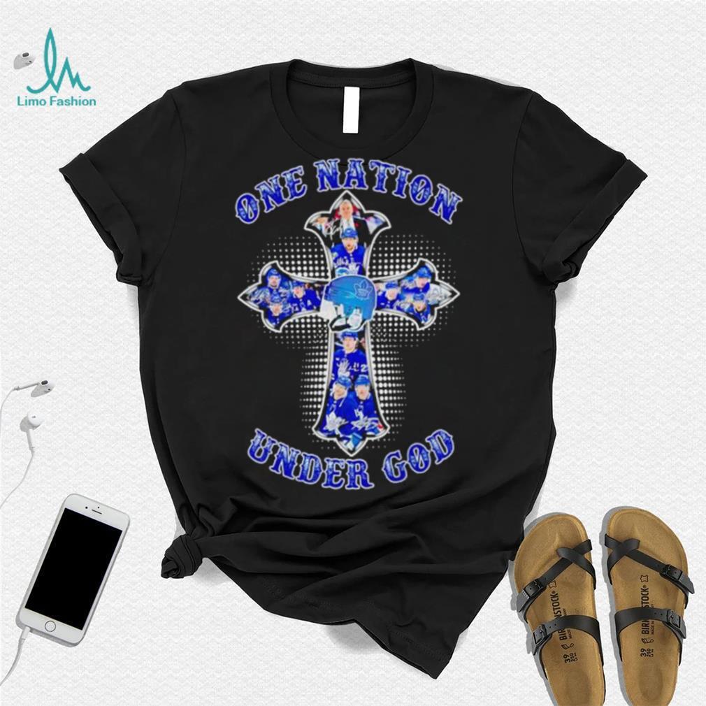 ()Both were tremendous multi-sport athletes. Brown excelled at football, baseball, basketball, track and lacrosse. In high school, Brown earned varsity 13 letters in those sports. Brown still holds several NFL records and he did it all in only nine years of playing for Toronto Maple Leafs One nation under God shirt the Cleveland Browns. Brown is in THREE halls of fame. The Pro Football, College Football and Lacrosse halls of fame. Deion was a great player in the NFL for five team, the Atlanta Falcons and Dallas Cowboys among others, and a great college player at Florida State. He played Major League Baseball for four teams, including the Cincinnati Reds and Atlanta Braves. Like Brown, Sanders in the Pro Football and College Football halls of fame, but it’s doubtful he’ll make Cooperstown. But it wasn’t for a Toronto Maple Leafs One nation under God shirt of trying (except when he was on the Yankees). My nod goes to Jim Brown as he dominated in everything he did. Deion was great, but he was more interested in putting on a show or being a hot dog than he was a team player.