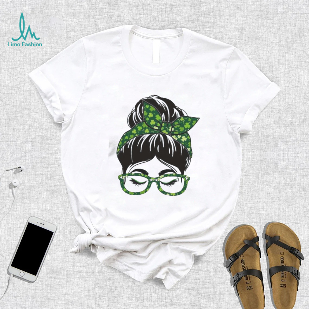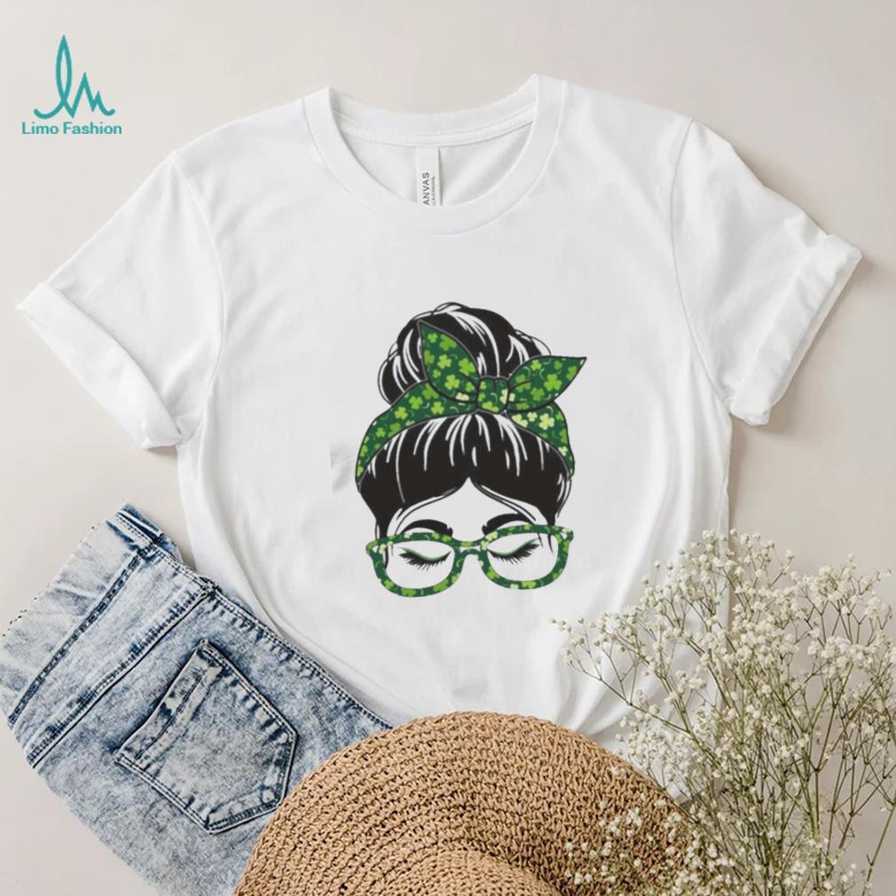 (Travel Agent Messy Bun St Patrick’s Day Shamrock Shirt, women shirt)Travel Agent Messy Bun St Patrick’s Day Shamrock Shirt