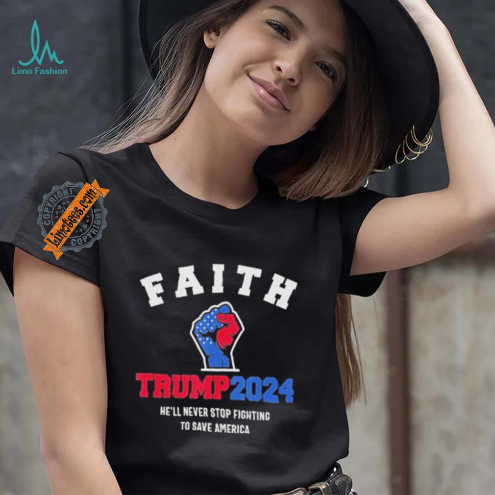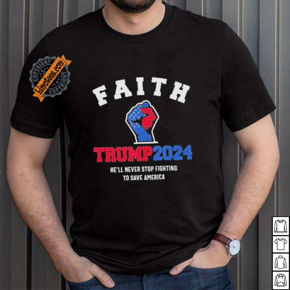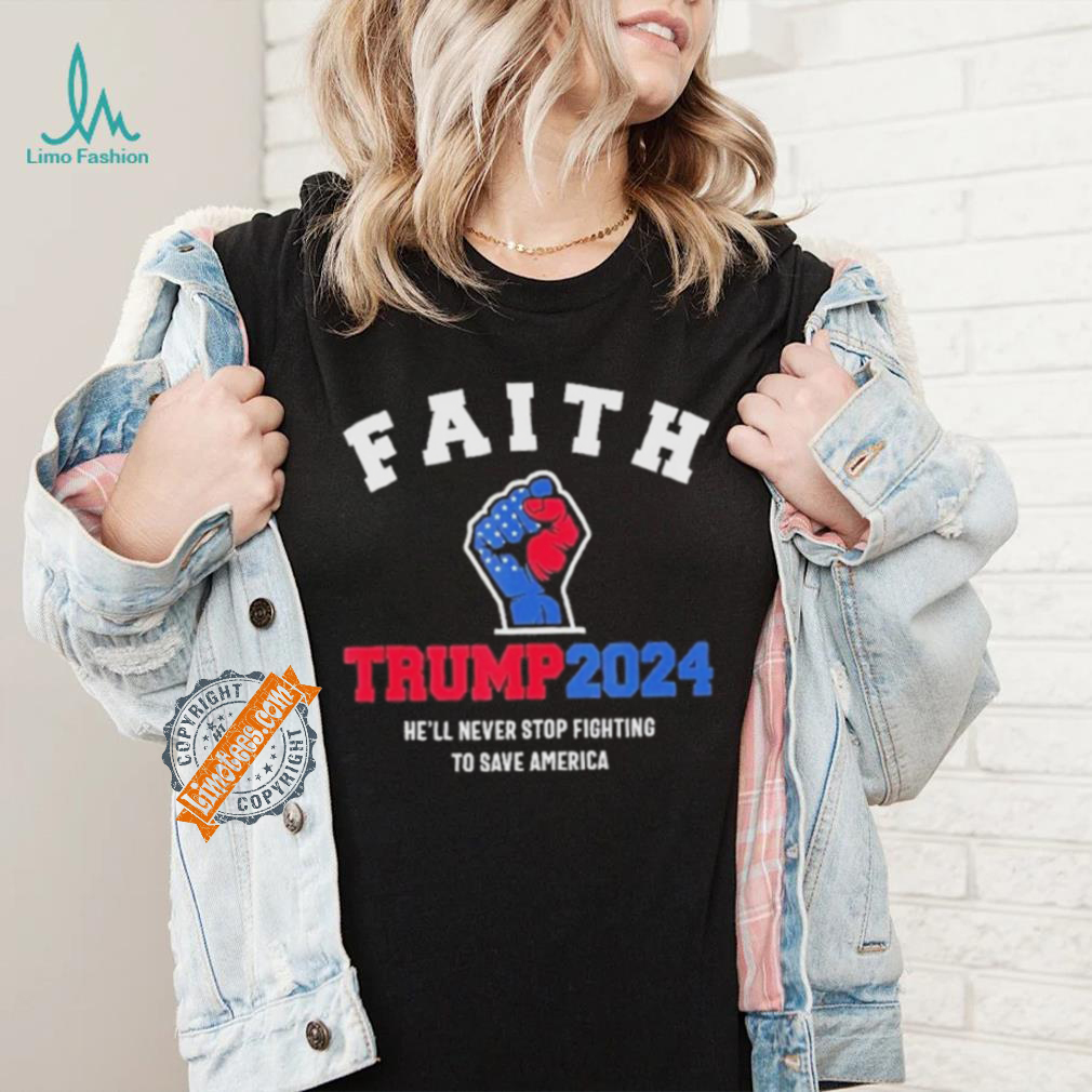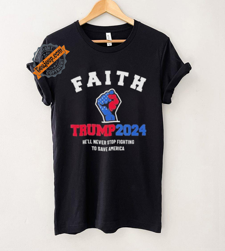 Trump 2024 He’ll Never Stop Fighting To Save America Trump Hand Shirt