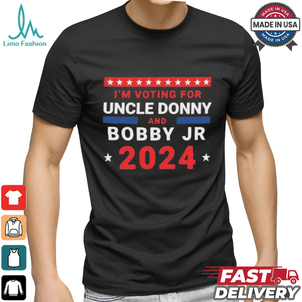 Trump And Kennedy 2024 I’m Voting For Uncle Donny And Bobby Jr T Shirt. Categories of this T-shirt is teejeep, Trump And Kennedy 2024 I’m Voting For Uncle Donny And Bobby Jr T Shirt from Dadyshirt ✓ Unique designs ✓ Large assortment ✓ Comfortable ✓ High-quality ✓ Easy to care for ✓ Available in a range of colours and styles for men, women ✓ Shop now ✓