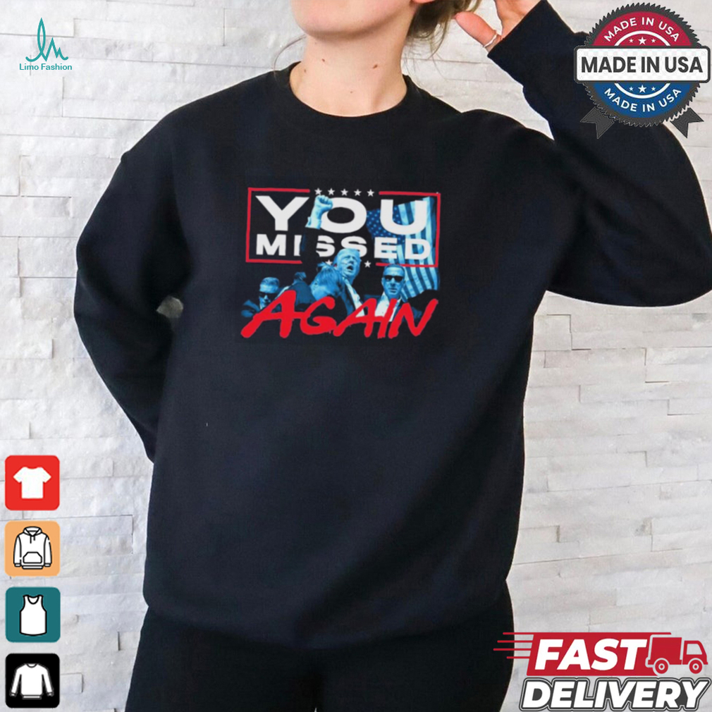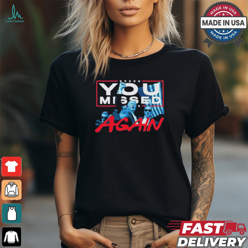 This is because people do not Trump Shirt You Missed Again Funny Trump 2024 President Trump Shot Shirt a definite standard for well-being, as human beings are almost adaptable to all living conditions (we adapt very quickly to all living conditions, be it good or bad, this trait is important for our survival). In fact, theoretically, you will never become satisfied in this sense. Therefore, it is important to note point.