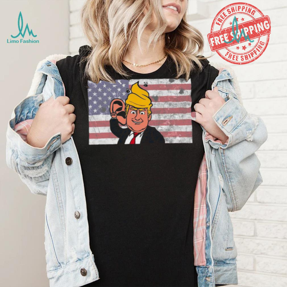 Everyone was now in good mood, including the Trump Shooting 2024 USA Flag Meme shirt . We had a grand time giving away tress. And we gave away thousands of trees. My girlfriend and I had just spent the last three days in a heavy rain, giving away free Christmas trees. Everyone made the best of a rainy situation. This put us both in a very good mood. I do not have any memories of Christmas day; however, two days later I asked my girlfriend if she would marry me. We had been dating all of six weeks. She said yes. We now have been married for over 45 years and often think about the “Great Christmas Tree Caper” around the holiday.