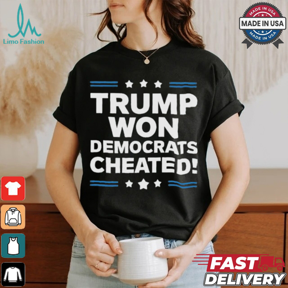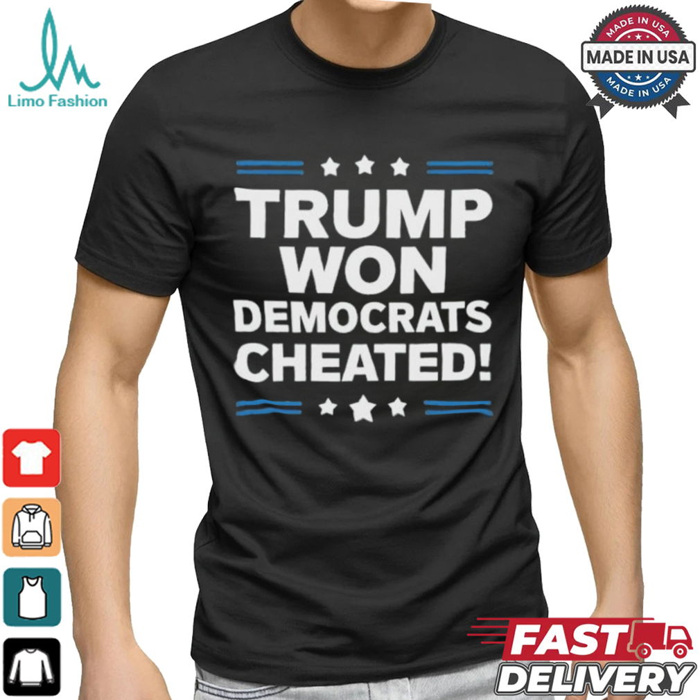Trump Won Democrats Cheated 2024 T Shirt. Categories of this T-shirt is teejeep, Trump Won Democrats Cheated 2024 T Shirt from Dadyshirt ✓ Unique designs ✓ Large assortment ✓ Comfortable ✓ High-quality ✓ Easy to care for ✓ Available in a range of colours and styles for men, women ✓ Shop now ✓