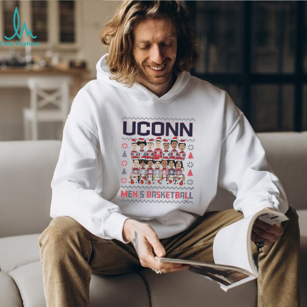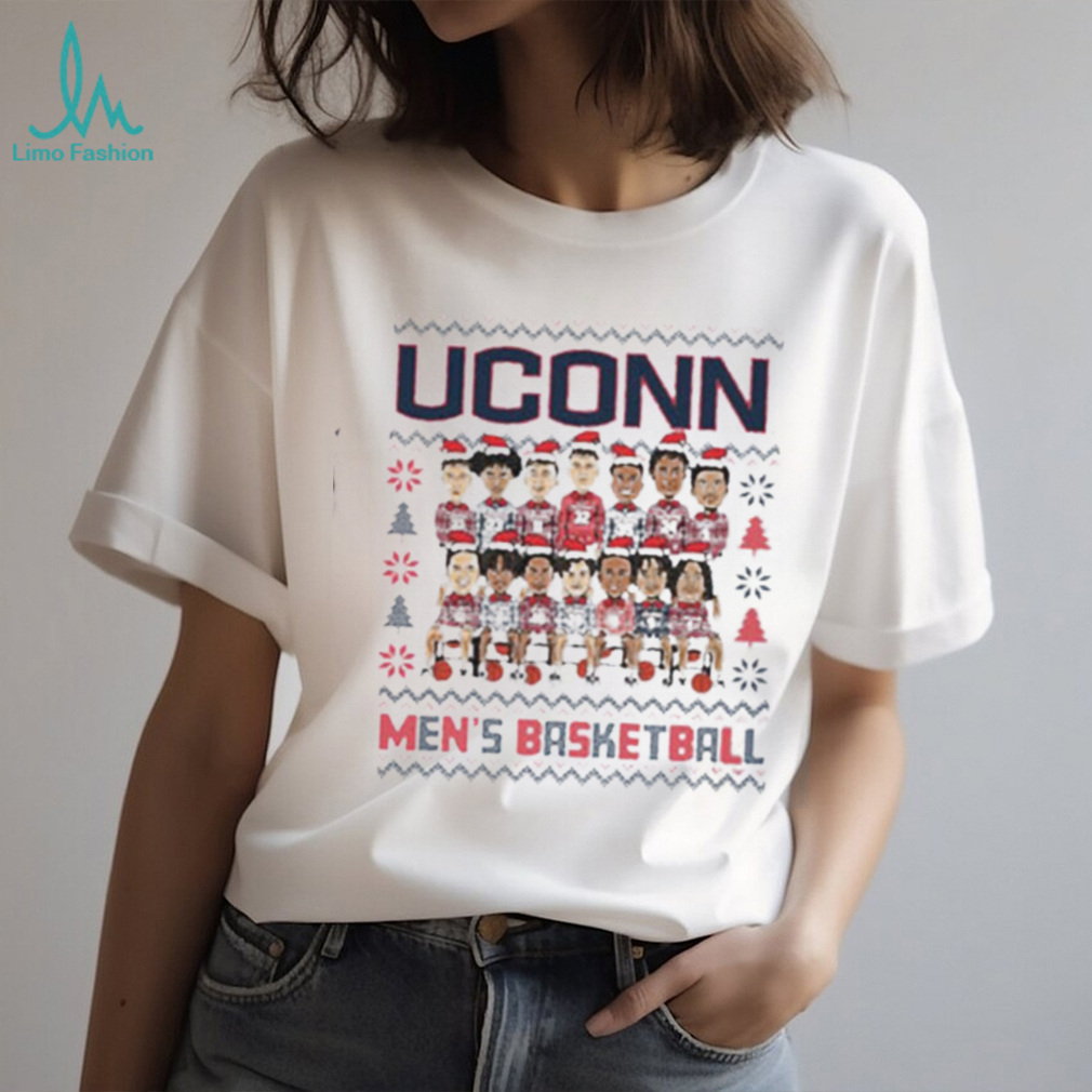 I do not remember Christmas Day itself that year, but the events around theUconn Huskies 2023 NCAA Men’s Basketball Holiday Team Caricature Shirt this holiday changed my life forever. I was living in Los Angles at the time and was dirt poor as I was very underemployed. I did not have any ambition, but was content. I had a new girl friend (we had been dating for not yet six weeks). I was too poor to buy a Christmas tree. It had been raining for about a week, and was expected to raining for the next week (for those of you that do not know the weather for Los Angeles, this was highly unusual). Three days before Christmas I was driving around with my girlfriend doing some last minute Christmas shopping, when an announcement came on the radio that they were giving away free Christmas trees at a location about one half mile from where we were. I looked at my girlfriend and she said, “Yes, let’s go get a Christmas tree” A couple left turns later, there we were. There was a truck with two trailers full of Christmas trees trying to give them away. The owner of the property where the truck was park had call the police and wanted them to be charged with trespassing. He had Christmas tree lot down the street and this was killing his business.