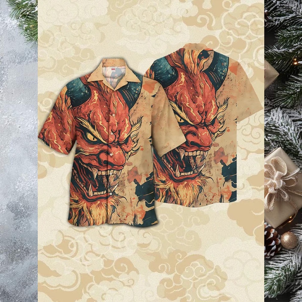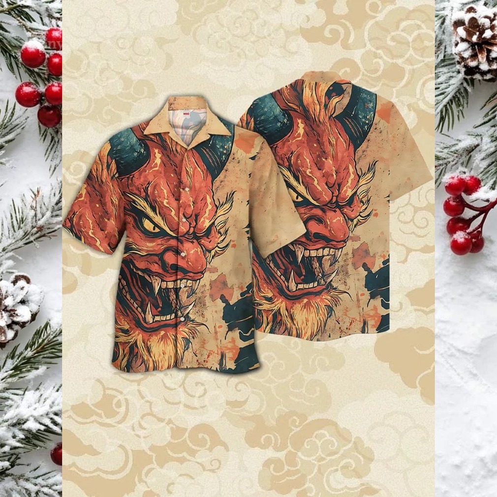 Ukiyo e Style Oni Demon Cuban Collar Hawaiian Shirt