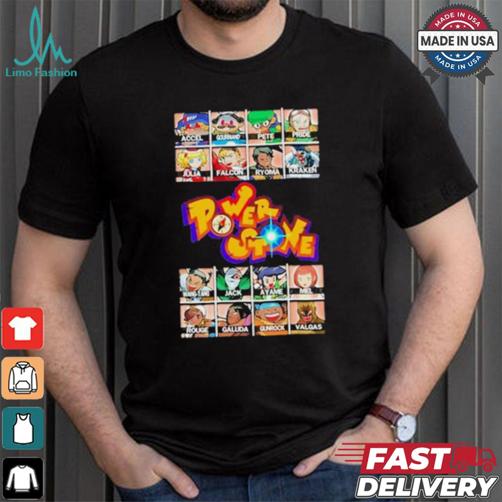 It’s a Unrooolie Power Stone Characters T shirt kid’s movie that adults can enjoy. The only bad language is done in a cutesy way, with unintelligible sounds, kind of like the adults always talked in Peanuts cartoons. Ralph gets his mouth washed out with soap for it. The only violence is a scene where Ralph, while being picked on by a bully, snaps and fights back. It isn’t overly violent, and it isn’t glorified fighting, it’s just a couple of kids fighting in the snow like kids do. Ralph is crying throughout, so it is not some kind of ‘Aha, the victim has turned the tables with violence!’ I think the only other scene of violence is where Ralph fantasizes that he defends the house from burglars in the backyard with a BB gun. The scene is in black and white and sped up like a funny silent movie, and the burglars wear comical, old timey burglar outfits – striped shirt and black masks, like the Hamburglar. I think Ralphie shoots them in the butt as they try to climb back over the fence to get away.