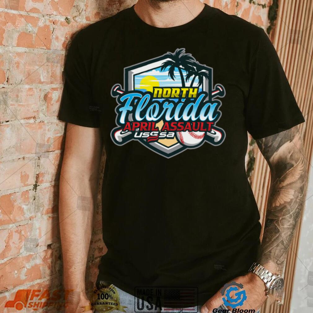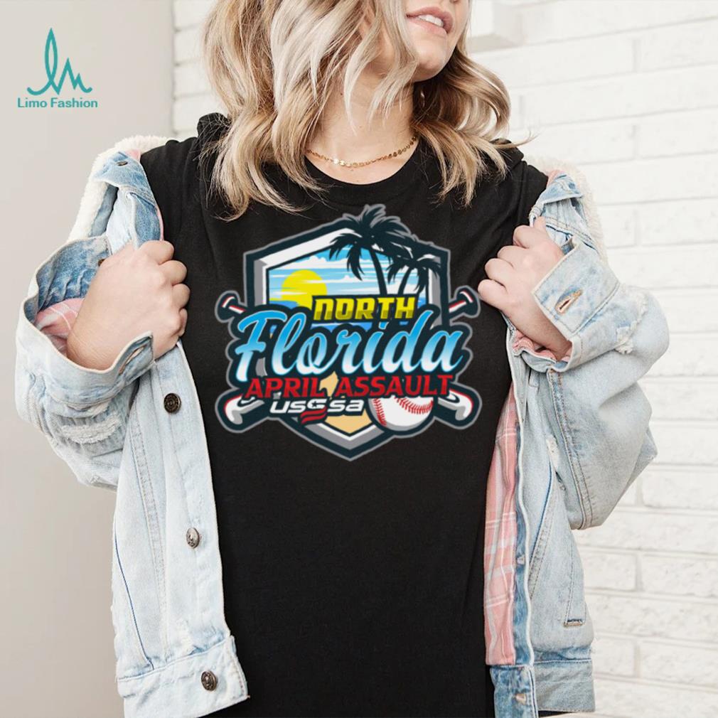 But with the spending you will increase the production of USSSA Florida Baseball North Florida April Assault 2024 logo shirt. Either way, in the macroeconomy, “Spending” is what leads to wealth production, “not spending” reduces wealth production and does nothing to increase money saved. That money saved will exist whether used for spending or not. So on either front, if the goal is to increase savings, and increase the net production of wealth, “not spending” is the wrong advice. “Not spending” will not increase the savings that is the preservation of investment, and it will likely not increase the net production of wealth, in fact it is more likely to decrease both. In the macro economy, “not spending” is more likely to have negative effect on the production of wealth and standard of living, than a positive one.