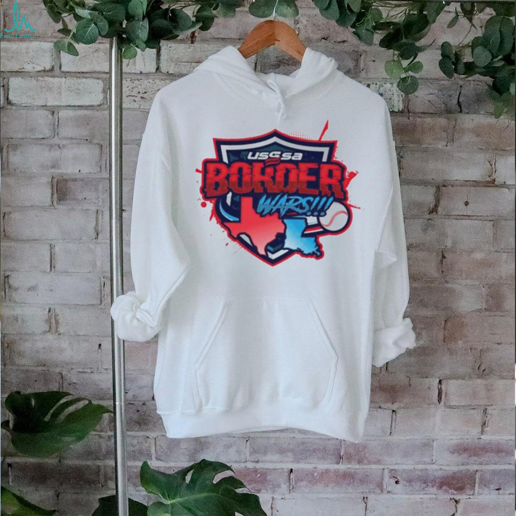 At the other outpost also all was finished. During this night we reached the Usssa Texas Baseball Border Wars 2024 Logo Unisex T Shirt of the Tannu Ola and descended again into a valley covered with dense bushes and twined with a whole network of small rivers and streams. It was the headwaters of the Buret Hei. About one o’clock we stopped and began to feed our horses, as the grass just there was very good. Here we thought ourselves in safety. We saw many calming indications. On the mountains were seen the grazing herds of reindeers and yaks and approaching Soyots confirmed our supposition. Here behind the Tannu Ola the Soyots had not seen the Red soldiers. We presented to these Soyots a brick of tea and saw them depart happy and sure that we were “Tzagan,” a “good people.