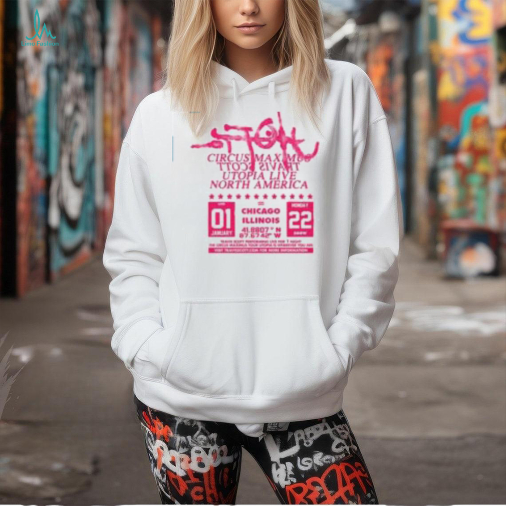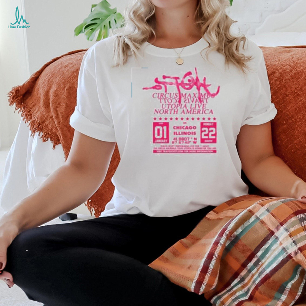 UTOPIA Circus Maximus Travis Scott UTOPIA Live North America Tour At Chicago Illinois Monday 22 January Chicago Tee II Fan Gifts Two Sides T Shirt