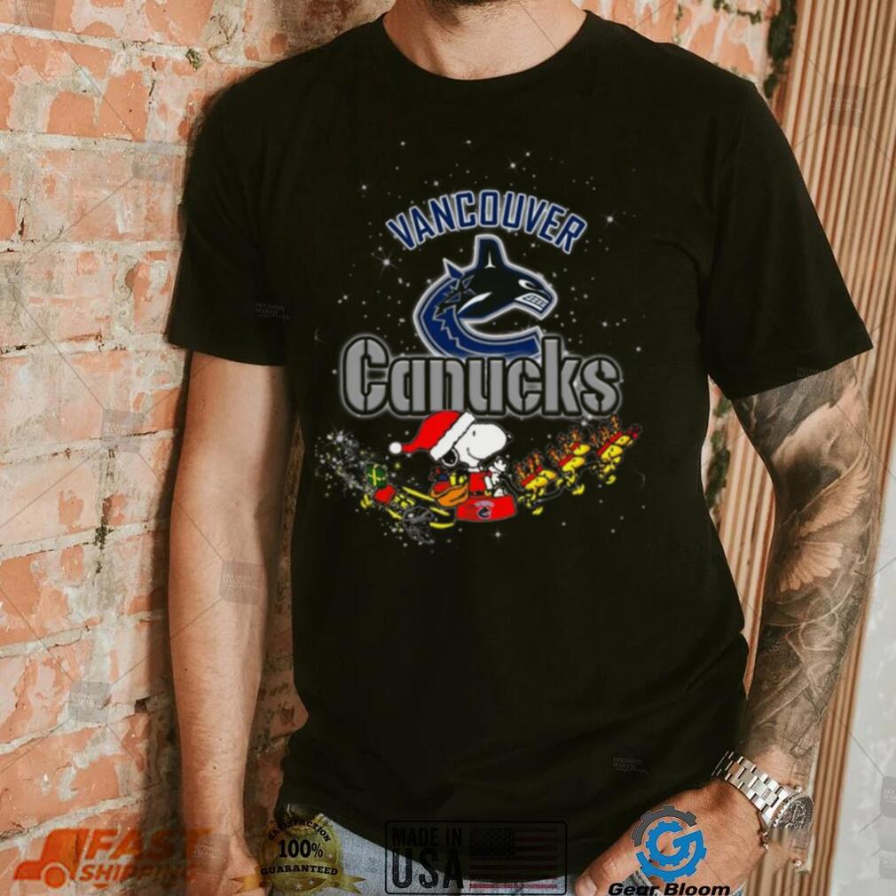 Vancouver Canucks NHL Santa Snoopy and Woodstock Christmas T Shirt
