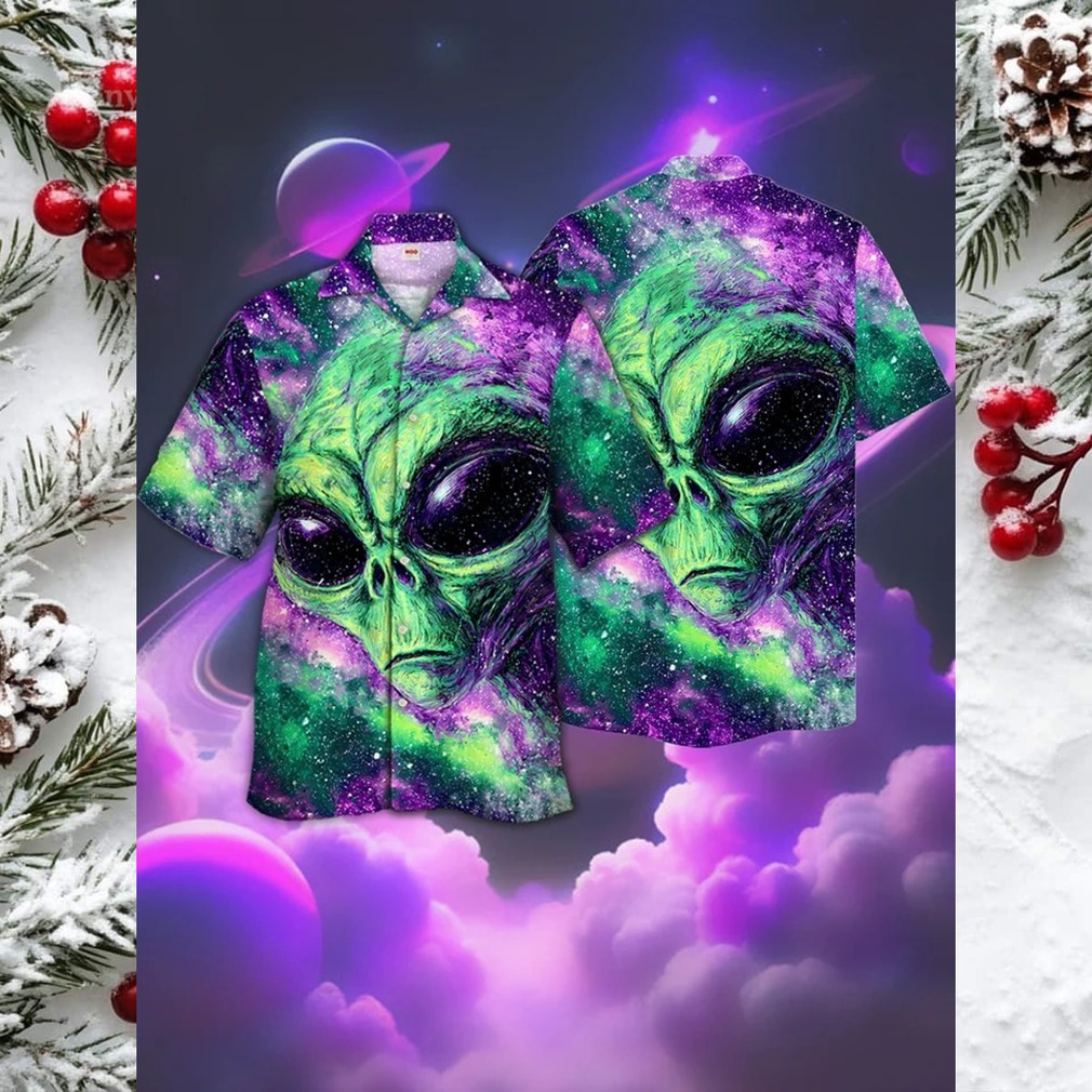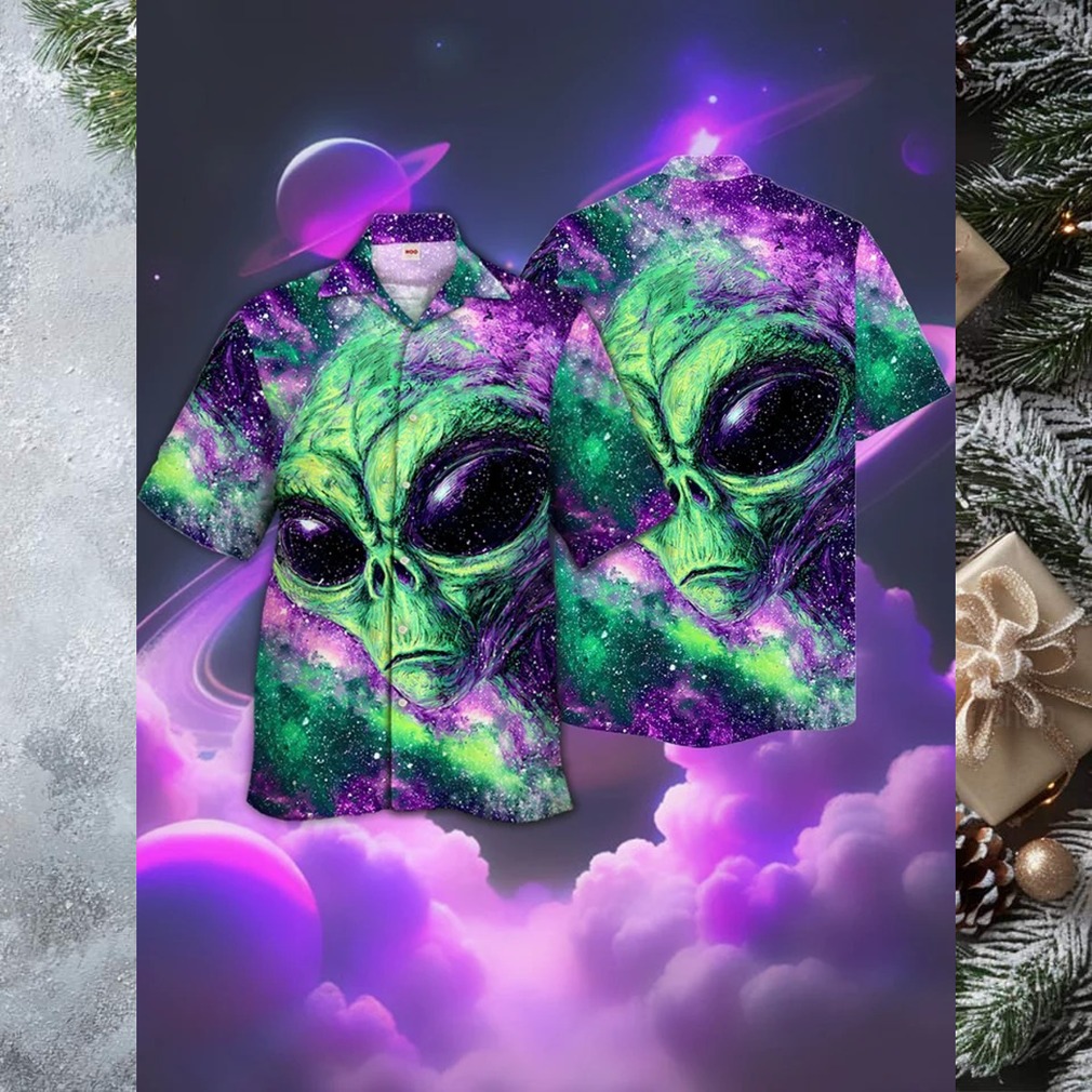 Vibrant Green & Purple Alien Galaxy Hawaiian Shirt