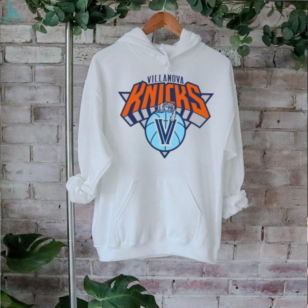 I left him and we Villanova Knicks New York Mashup Parody Basketball T Shirt wandering through the flea market but inside I couldn’t wait to go back and get him. My roommate had no say since we were in no relationship (he’s gay) and it was my apartment that he was staying at. As we left I made a beeline for that kitten. “If he’s still there I’m taking him home” He was indeed still there only this time when I called “kitty” he quickly turned to me…it was destiny “See! He loves me already too!” I yelled. I paid the $15 adoption fee. Signed a contract to get him vaccinated and fixed and purchased all the other kitty needs.