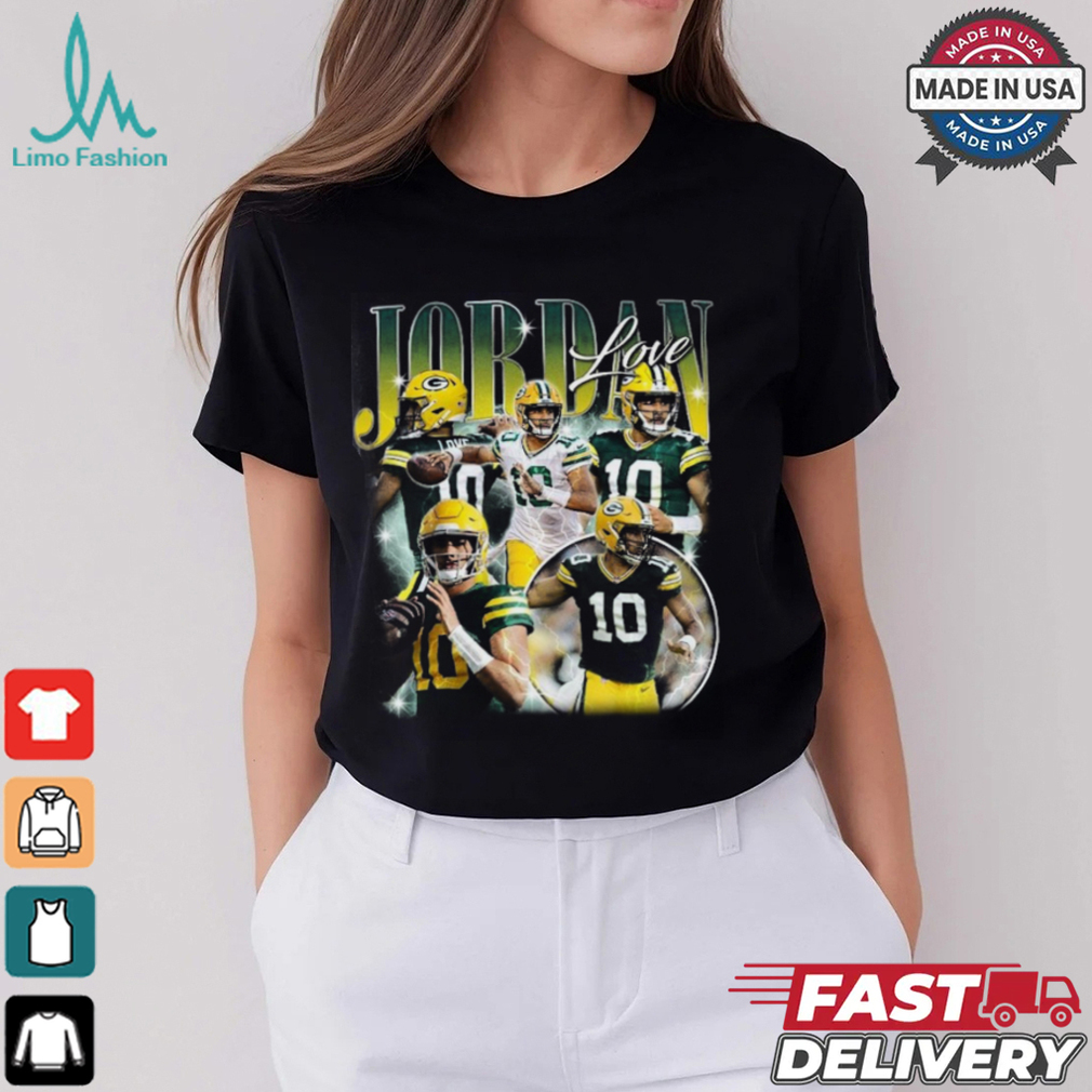 You see, Christmas Eve is really the Vintage 90s Graphic Style Jordan Love Shirt when my mom’s sisters and brothers would all gather in South Boston with their kids (My cousins of course.) Since they too were teens like myself back in the day, they all did their own thing on Christmas morning — But the one thing they didn’t want to do was leave their gifts after opening them. So Christmas Eve became more important to us as a whole to come together, celebrate and then visit midnight mass at the local church before going home. By the time I got home, it was after 1am, so I guess it was really Christmas morning if you want to get technical about it. The gifts were promptly opened and I was in bed no later than 3am to sleep most of the morning in peace. Now with two kids of my own, I will be getting up Christmas morning to greet the day and watch their faces. Mainly because Santa Claus is still important to them and he only visits on Christmas Eve when you’re asleep as all know.