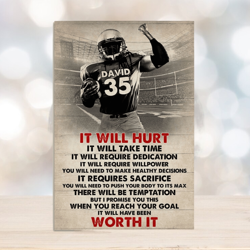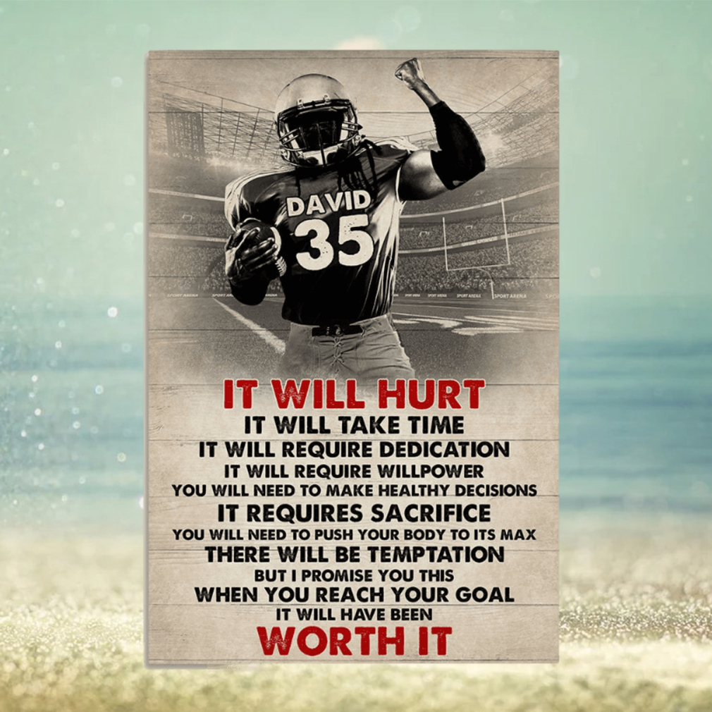 ()Vintage American Football Player Poster It Will Heart It Will Take Time,