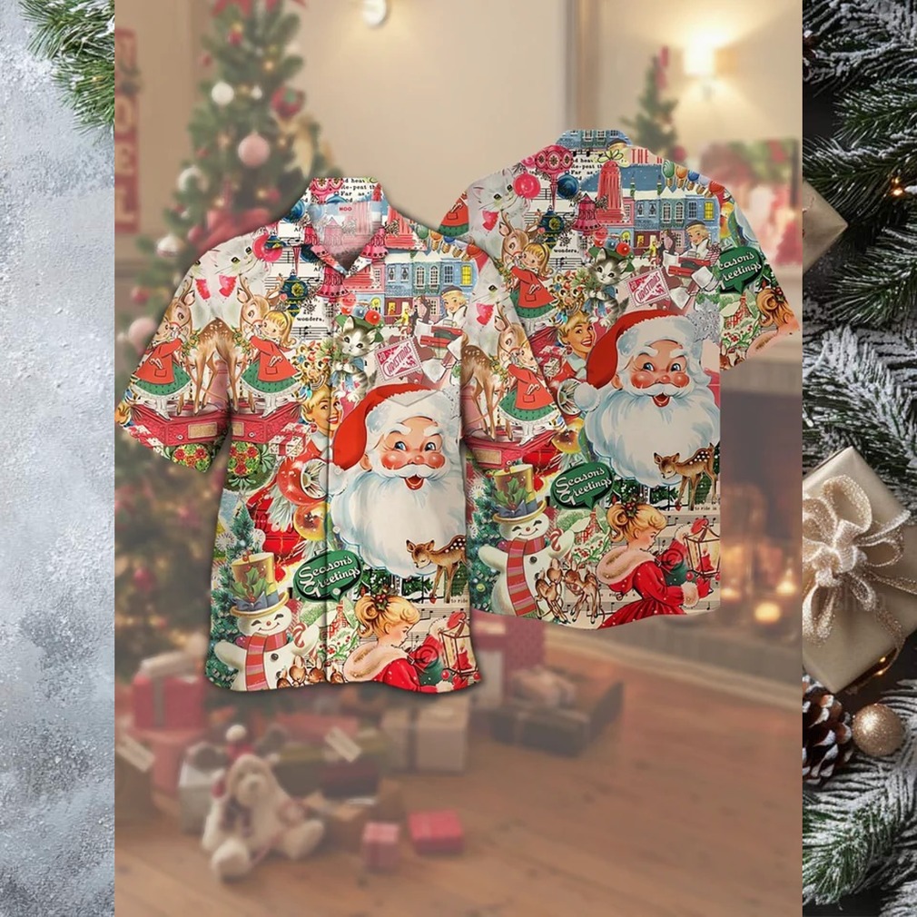 Vintage Santa Claus & Snowman Christmas Hawaiian Shirt