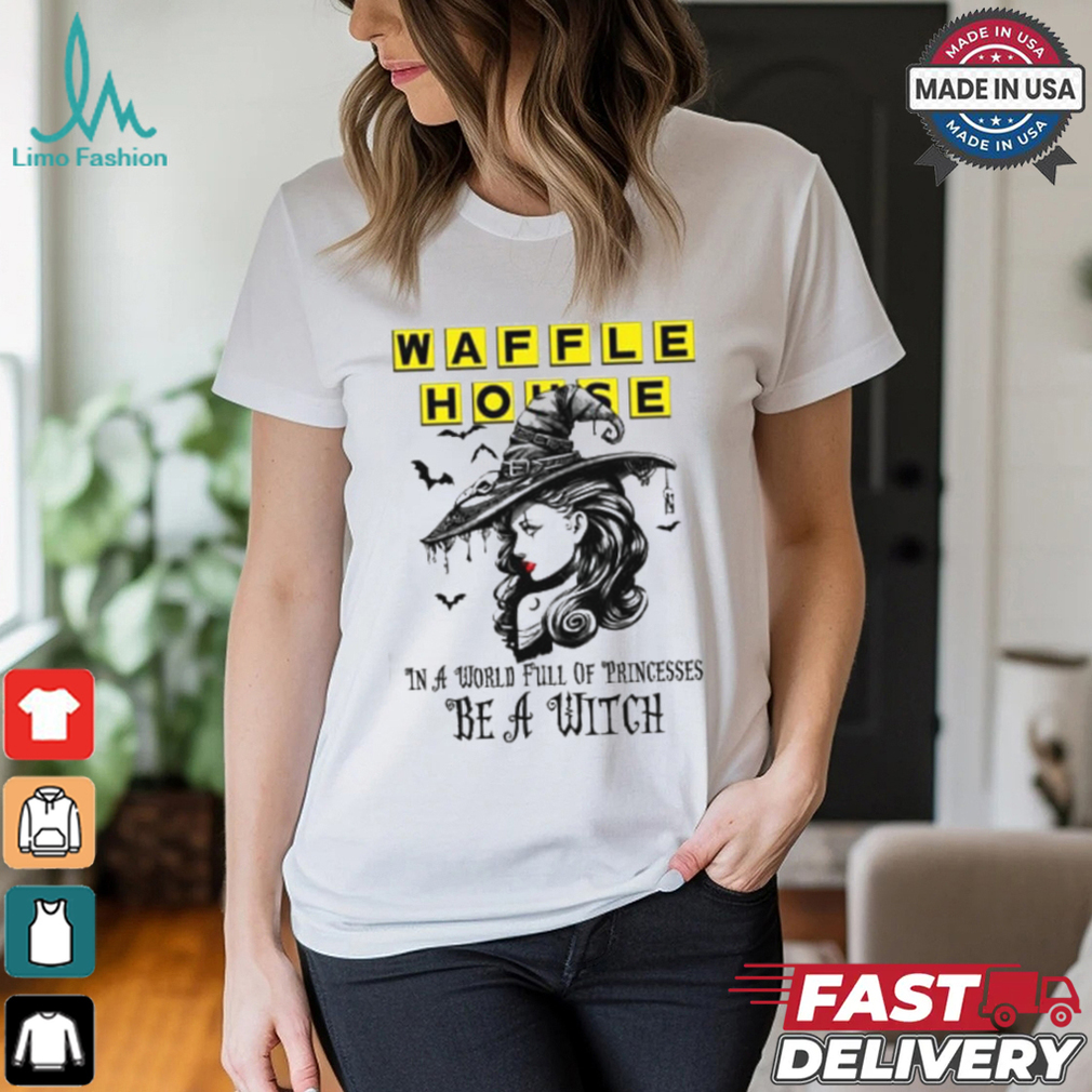 Many of the Waffle In a World full pringcesses be a witch shirt Christmas customs were inherited from older Winter Solstice celebrations—including greenery indoors, feasting and gift-giving. It seems quite likely that the celebration of the birth of Jesus was scheduled at that time in order to piggy-back on existing holiday observances. Halloween is very directly descended from the old Celtic feast of Samhain, when the dead return to visit the living. Modern Pagans observe this and Beltane (May Day) as their major holidays, the Feast of the Dead and the Feast of the Living on opposite sides of the Wheel of the Year. Easter’s Pagan connections are suggested by its English name, Eostara being a Pagan Germanic Goddess associated with the Spring Equinox. The bunnies and eggs probably go back to Pagan times as well.