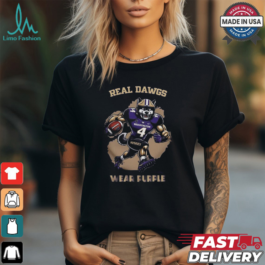 Secondly, this Washington Huskies 2024 Real Dawgs Wear Purple Mascot T shirt not a ‘prank’. I’ve worked with pre-teen and teenage girls. Nobody cuts all their friend’s hair off as a ‘funny prank’. This was an act of bullying designed to humiliate your child. Perhaps she thought that they were her friends, but they are not. I’ve seen other similar cases to this – it’s always groups of girls who gang up on another girl. Think about it – this would not have been a spur of the moment decision. The other girls likely planned this in advance. Where did the scissors come from? How did they all know to stay awake while your daughter fell asleep? This was definitely pre-meditated.