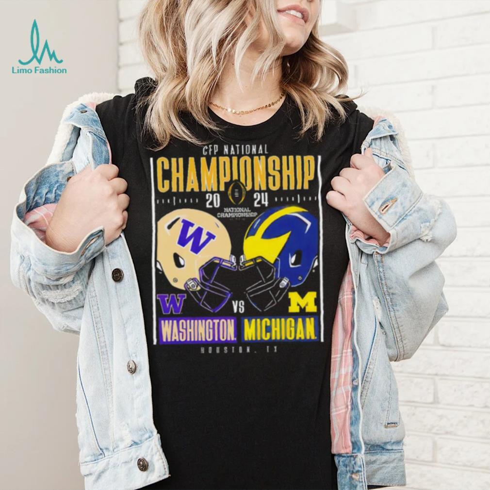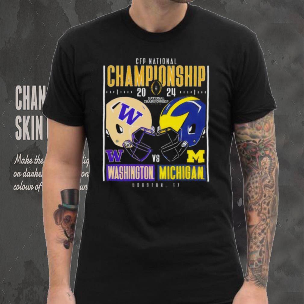 Washington Huskies vs Michigan Wolverines 2024 CFP national championship Houston Texas helmet head to head shirt