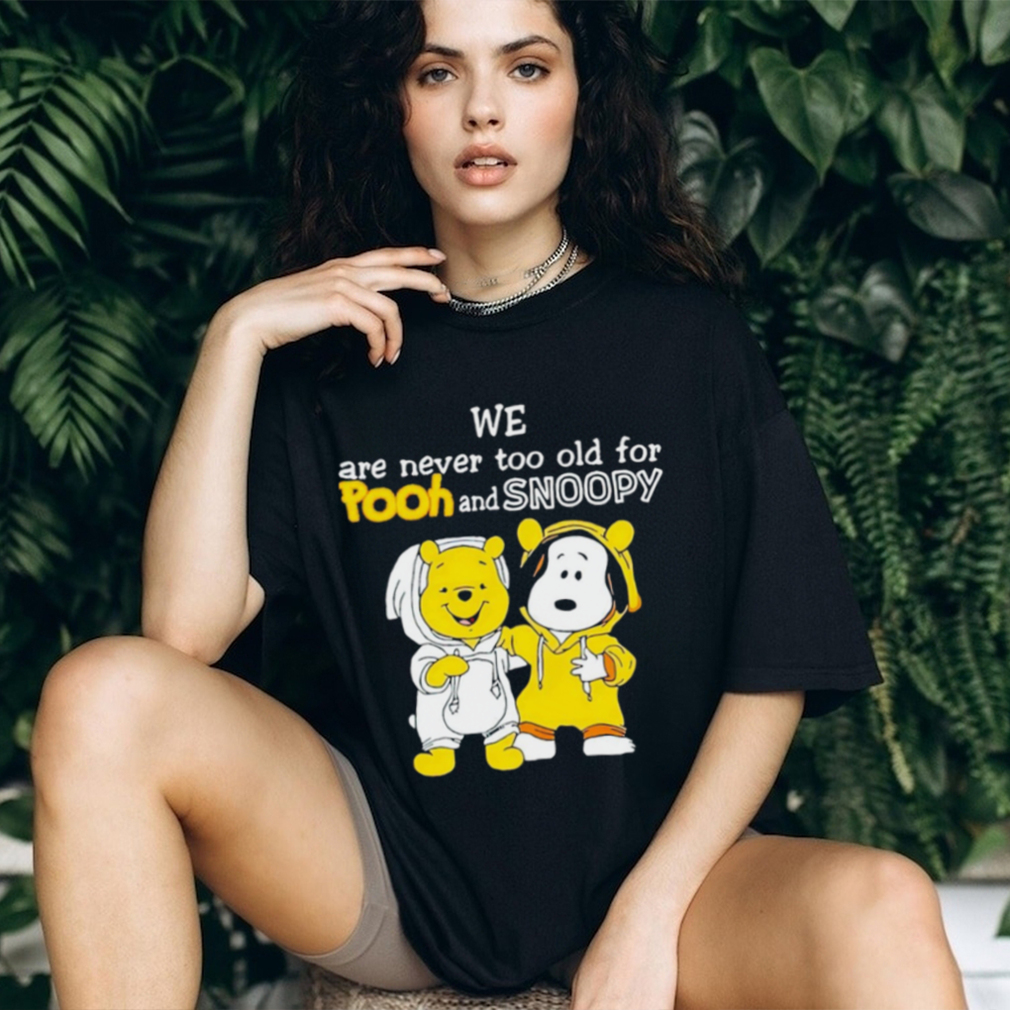 We are never too old for Pooh and Snoopy shirt, Hoodie, Sweater, Vneck, Unisex and T-shirt