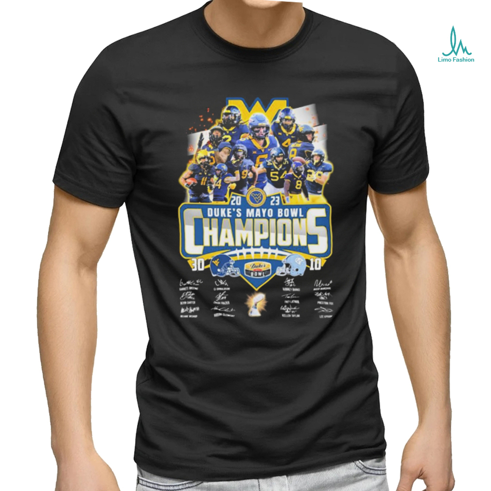 West Virginia Mountaineers 2023 Duke’s Mayo Bowl Champions 30 10 Unc Signatures Shirt. Categories of this T-shirt is teejeep, West Virginia Mountaineers 2023 Duke’s Mayo Bowl Champions 30 10 Unc Signatures Shirt from Dadyshirt ✓ Unique designs ✓ Large assortment ✓ Comfortable ✓ High-quality ✓ Easy to care for ✓ Available in a range of colours and styles for men, women ✓ Shop now ✓