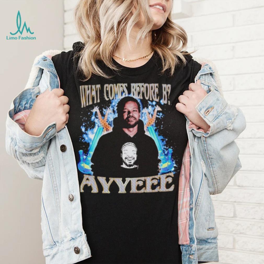 The What comes before B ayyeee vintage shirt is educational in nature and also includes holiday items from the other world religions such that the large majority of humanity (66-90%) are covered including purely secular displays. The displays would include educational material created by a diverse and multicultural team of experts and educators. This would be acceptable in museums and schools. A display that does not focus on Christianity but also includes secular and other world religions decorations as would be appropriate for the season. The displays should not be intrusive and should be ornamental in nature. A description or plaque explaining the religions represented should be placed nearby.