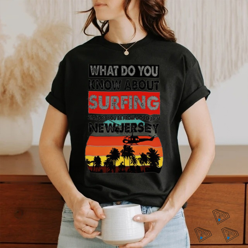 Yes South Jersey is affiliated with Philadelphia the What do you know about surfing major Unisex T Shirt the north is with New York. Just get an Eagles fan and a Giants fan in the same room to see how strong those affiliations are. But South Jersey doesn’t find it’s identity in it’s big-city affiliation the way the north does. South Jersey is largely rural, with a focus on agriculture over industry, with countless acres of cranberry bogs, sod farms and other crops. The towns are smaller, the people friendlier, the pace is slower and the living is easier. The South Jersey shore is where you’ll find the Victorian treasure that is Cape May, the world class beaches and boardwalks of Wildwood, Long Beach Island and others, the nightlife of Atlantic City, and getaway towns like Stone Harbor. South Jersey still has it’s own rodeo – the historic Cowtown Rodeo in Pilesgrove. South Jersey boasts the ecological treasure that is the Pine Barrens (home of the infamous Jersey Devil), as well as the New Jersey State Aquarium. I could go on, but I don’t want to brag too much – we’re not that kind of people. In the north, New Jersey is what people go through to get to the NYC, and where they go when they can’t afford to stay there. For them, New Jersey is like a consolation prize – you can’t be in the main room, but you can watch from outside. For people in the south, Philly is the getaway – a great place to visit, for sure, but not where they want to stay. And it’s where Philadelphians go when they need a break from city life, a place to relax, unwind, and rediscover an easier way of life.