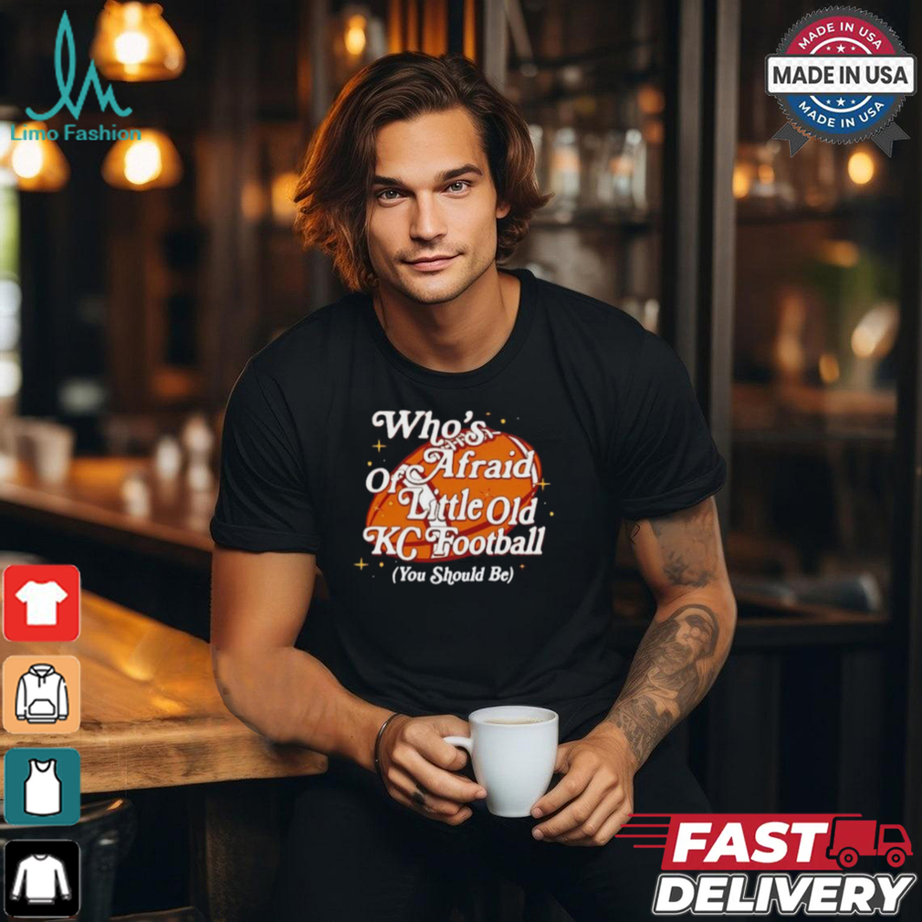 Contrary to what many people believe, there is Who’s afraid of little old KC football shirt easy or simple way to happiness. There are no “ten steps” methods that can immediately make you feel more fulfilled in life and change you completely. Most advice that are on the internet or are made by other people in general are not practical and some are fueled by common misconceptions that bombard the society. You may see some quotes or pictures with clever rhetoric and emotional appeal and feel a temporary surge of motivation, however, in the long term, the temporary surge will lose its appeal to you and you will lose your motivations.