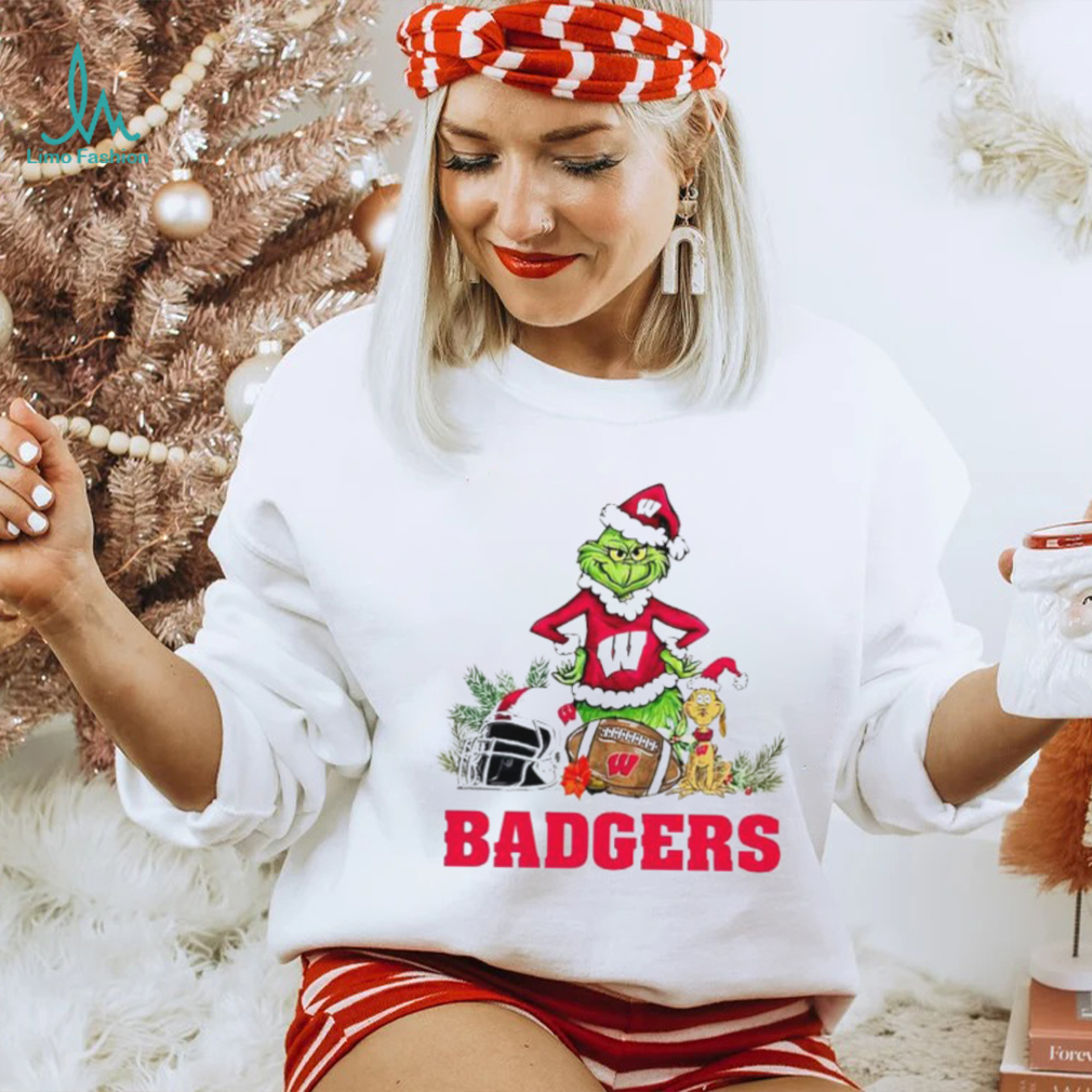 Wisconsin Badgers Grinch and Max dog funny Christmas shirt