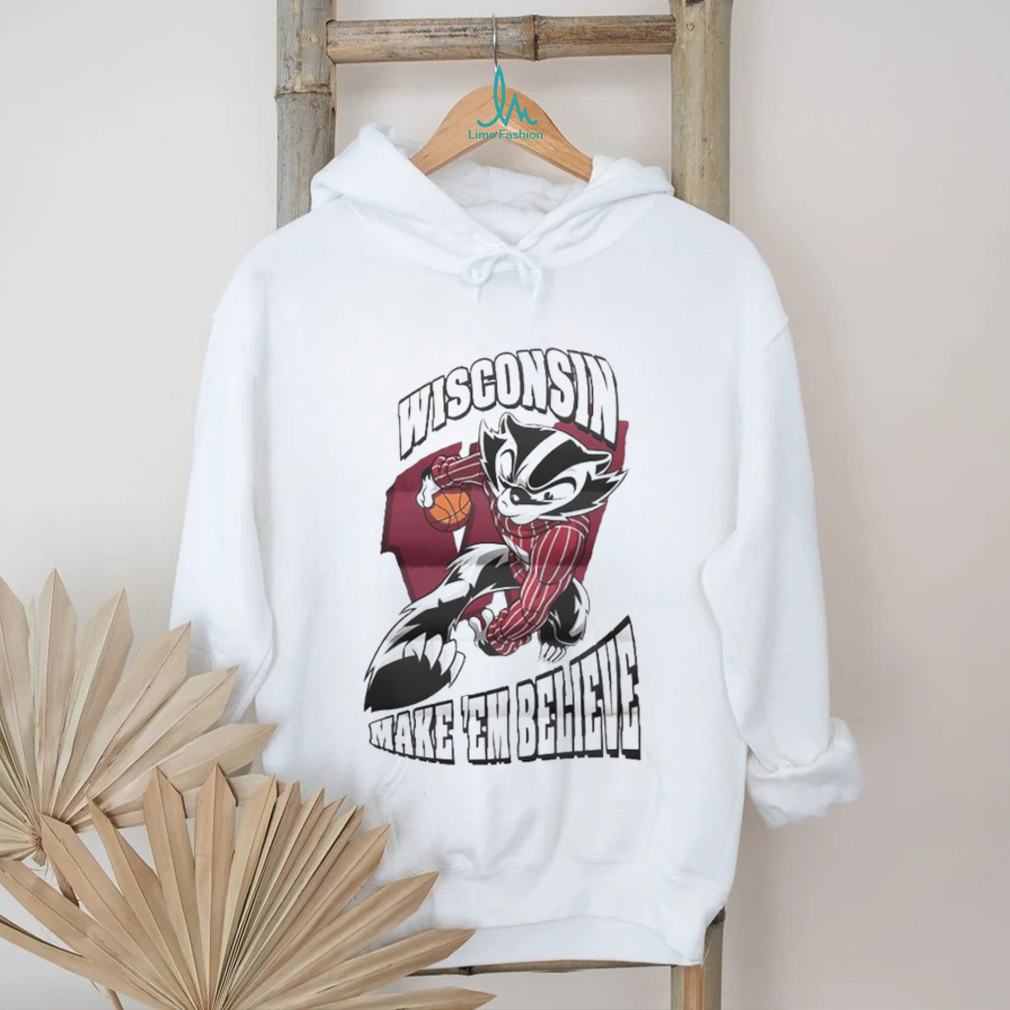 Wisconsin Badgers Make ’em Believe Mascot shirt. Categories of this T-shirt is teejeep, Wisconsin Badgers Make ’em Believe Mascot shirt from Dadyshirt ✓ Unique designs ✓ Large assortment ✓ Comfortable ✓ High-quality ✓ Easy to care for ✓ Available in a range of colours and styles for men, women ✓ Shop now ✓