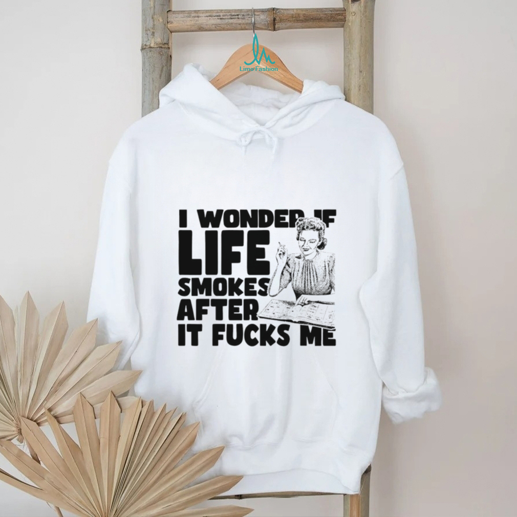 Woman smoking I wonder if life smokes after it fucks me shirt, Hoodie, Sweater, Vneck, Unisex and T-shirt