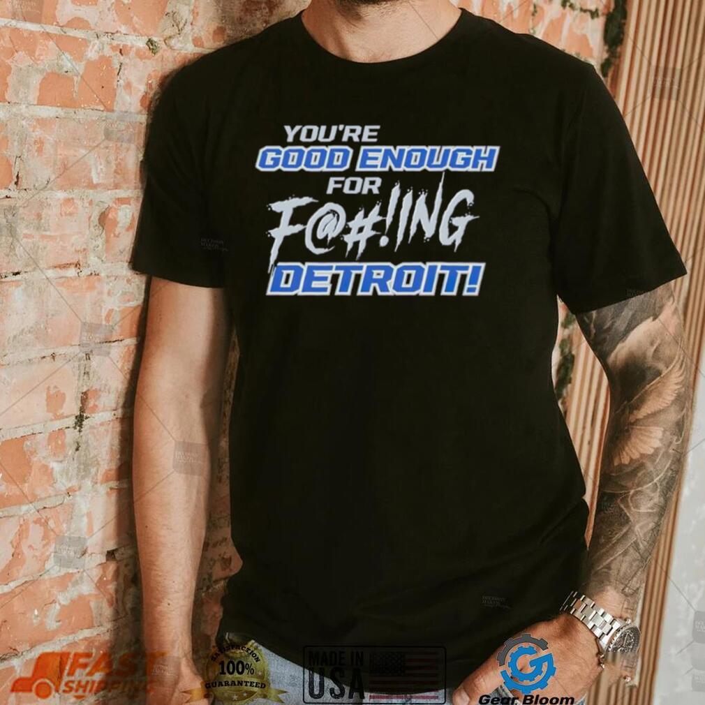 As an IDE for You’re good enough for fucking Detroit Lions shirt and other languages, PyCharm gives you highly accurate code completion that helps you write less code and avoid bugs. With its smart code navigation, you can quickly navigate around your code to inspect, for instance, the implementation of a class you are about to instantiate. PyCharm’s project-wide refactorings will ensure you won’t break any code when, for instance, renaming a variable or changing a method signature, and much more. Together, all this makes you more productive as a developer and increases your overall ergonomics. When using PyCharm, you can avoid writing boilerplate code over and over again, feel more confident when exploring code bases, and have the ability to work with technologies you are not fully experienced with.