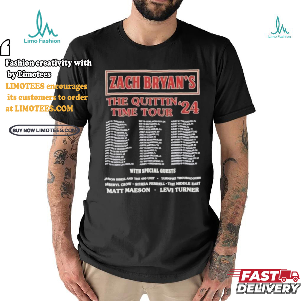 Zach Bryan’s the Quittin Time Tour 2024 Schedule Shirt. Categories of this T-shirt is teejeep, Zach Bryan’s the Quittin Time Tour 2024 Schedule Shirt from Dadyshirt ✓ Unique designs ✓ Large assortment ✓ Comfortable ✓ High-quality ✓ Easy to care for ✓ Available in a range of colours and styles for men, women ✓ Shop now ✓